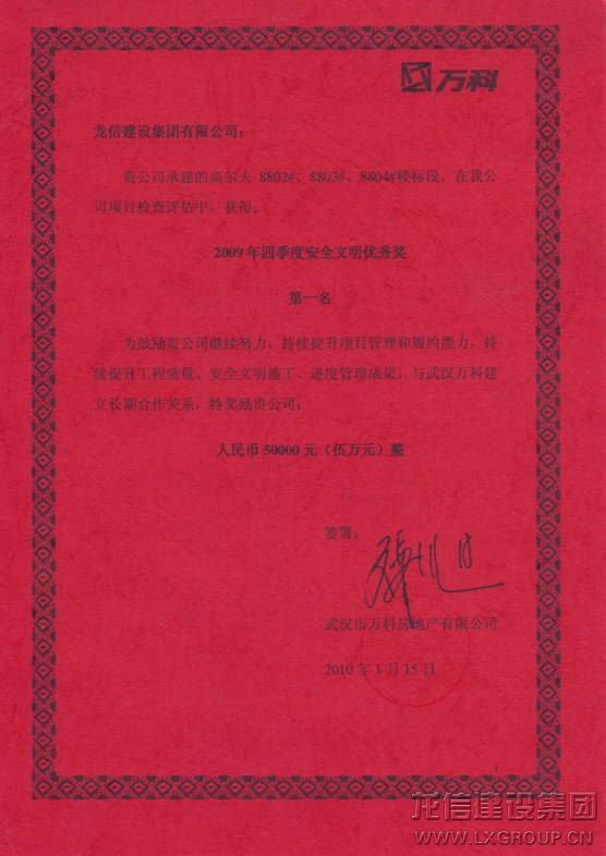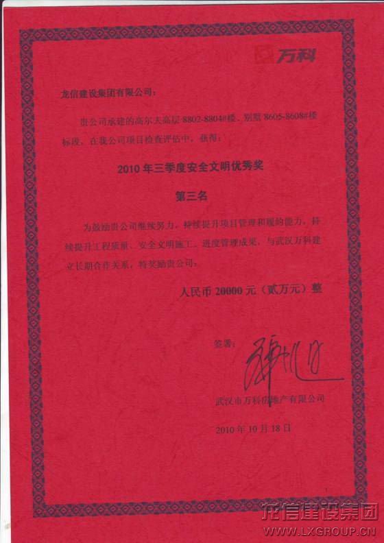上一篇:龍信集團(tuán)被評為“2010年度江蘇省優(yōu)秀進(jìn)京施工企業(yè)”