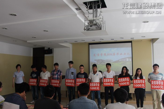 首先,卞勤華主席宣讀了龍信集團獎學金、助學金表彰文件,黃麗英為孫曉東等10名龍信獎學金獲得者和靳招利等10名龍信助學金獲得者頒獎。孫校長和卞主席為畢業生代表頒發畢業證書。