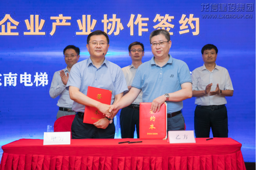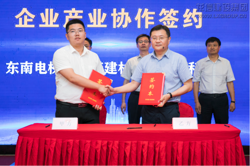 大會現(xiàn)場,在海門市人民政府副市長勞劍東,蘇商會副會長兼秘書長俞文勤,龍信集團(tuán)董事長陳祖新的見證下,中梁集團(tuán)和南通現(xiàn)代建筑產(chǎn)業(yè)園合作的中梁集團(tuán)建筑產(chǎn)業(yè)基地項目、萬科集團(tuán)和南通現(xiàn)代建筑產(chǎn)業(yè)園合作的萬科集團(tuán)采筑平臺項目、阿路美格和南通現(xiàn)代建筑產(chǎn)業(yè)園合作的A級防火金屬復(fù)合板及防火保溫一體化產(chǎn)品項目集中簽約。龍信集團(tuán)與東南電梯、久諾建材、法寧格科技進(jìn)行產(chǎn)業(yè)協(xié)作簽約。