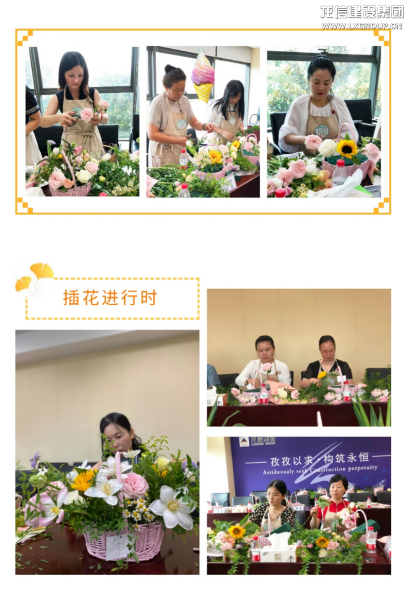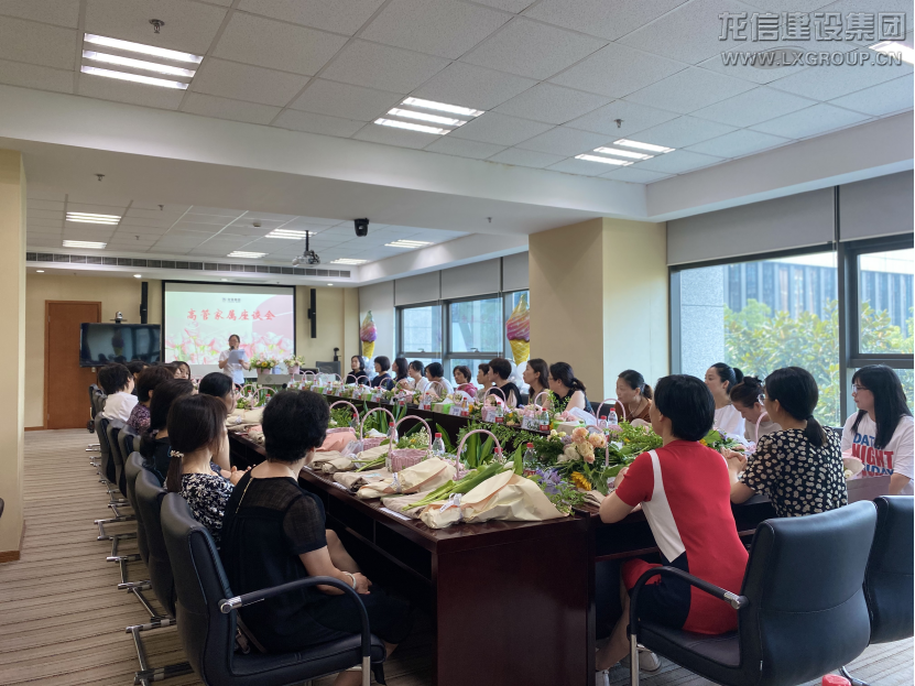 參觀結束,高管家屬在龍信大廈二樓會議室進行座談并開展插花活動。座談中,大家表達了各自想法,肯定了公司近來年的發展,對公司給予的關心關愛表示感謝,祝愿公司在新時代高質量進程中,跑出發展加速度,創造更加美好的明天!隨后進行的插花活動中,花藝老師介紹了鮮花名稱、特點及花籃制作步驟。大家在這一過程中,不僅欣賞到花的自然美,還體驗到人與大自然,人與藝術的交流,陶冶情操的同時提升了藝術修養。
